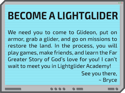 Hey! I'm Bryce. I'm glad you're here! These Lightglider games and activities are a fun way to discover the world of Glideon!